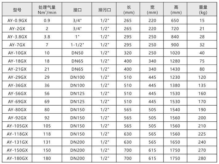 进气压力:0.2~1.0Mpa 进气温度:5℃~65℃ 初始压降:≤0.005Mpa